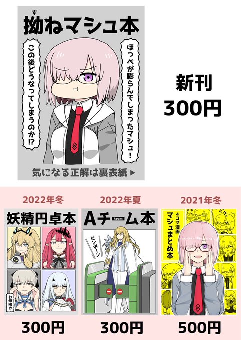 78 334 冬コミのお品書きです! 夏に出した「Aチーム本」他、既刊ももってくので前回買えなかったという方も是非! たかしろ工場 金曜東A-70a 22/12/28 19:23