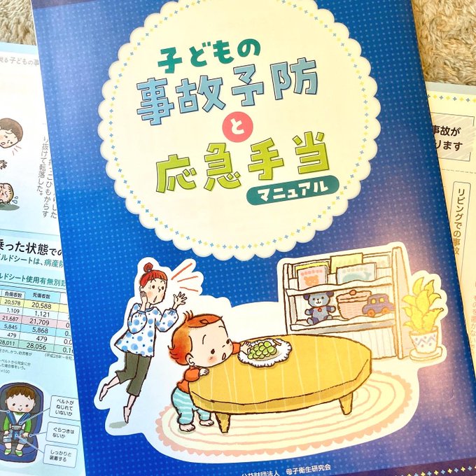 0 9 『子どもの事故予防と応急手当マニュアル』(母子衛生研究会) 表紙のイラストと、中面カットを数点、描きました。 乳幼児健診などで無料配布される冊子です。 #タカタカヲリ #イラスト #子どもの事故予防 22/07/28 12:51