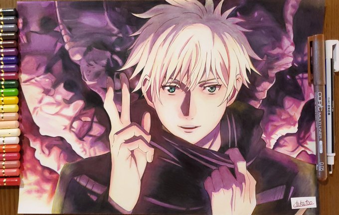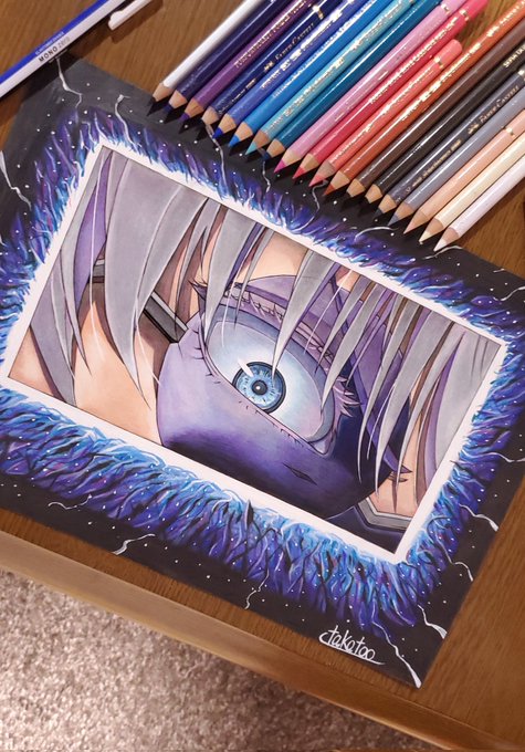 386 2832 色鉛筆で五条先生描きました 無領空処のシーンかっこいい! #呪術廻戦 #模写 21/03/03 19:45