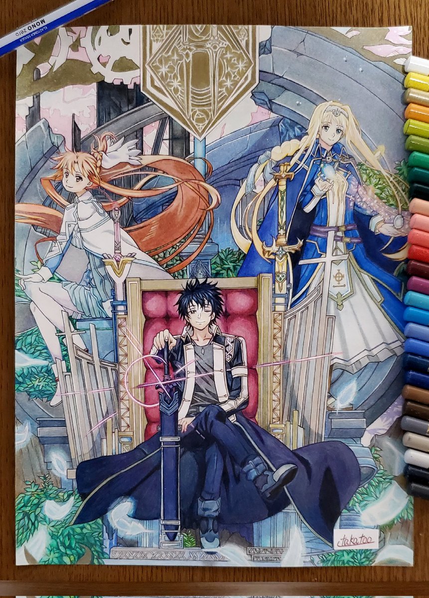 84 295 色鉛筆でキリト/アスナ/アリス描きました! 21/12/29 19:14