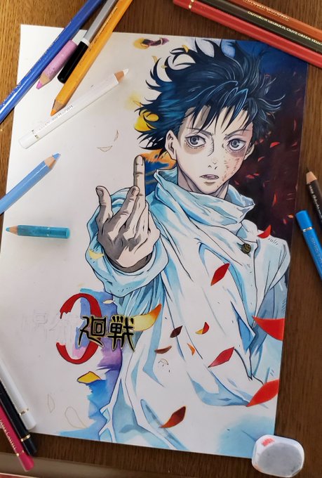色鉛筆で呪術廻戦0のポスター描きました! 憂太カッコよすぎる。。