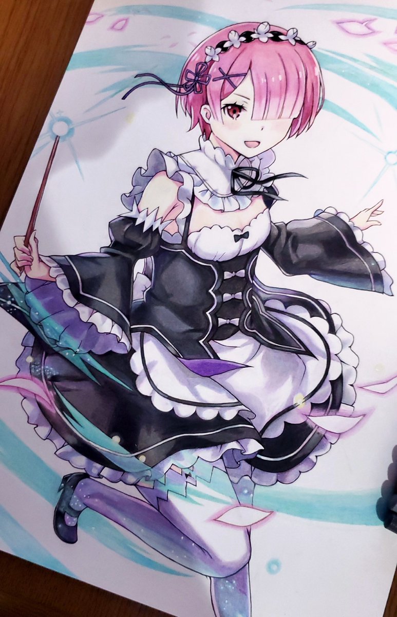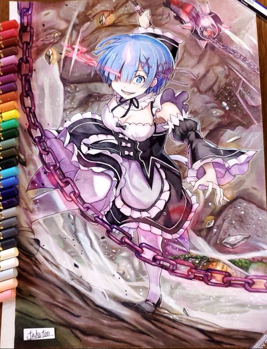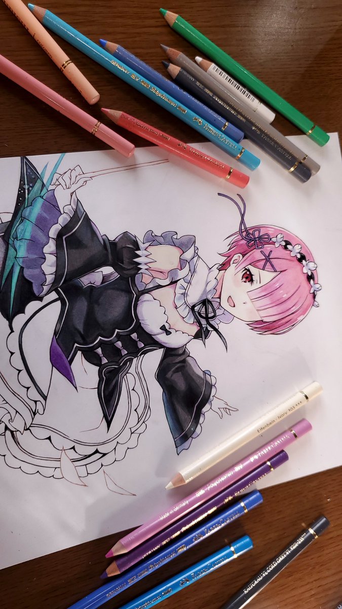 色鉛筆でレム描きました! 鬼レムはなんだかんだ初描き #模写
