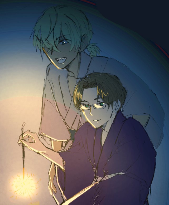 #レマ版深夜のお絵描き60分一本勝負 お題「花火」 線香花火と浴衣レマ🙌