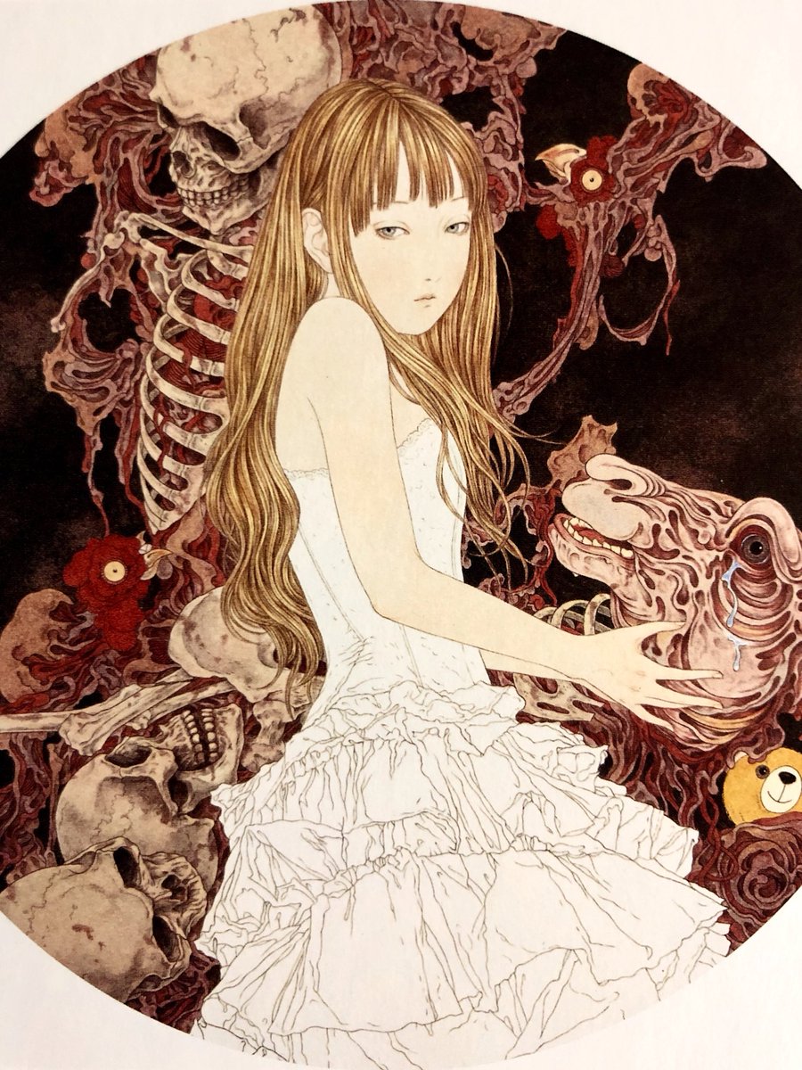26 250 朽ち果てた部屋の中で今も尚漂う甘やかな髪の香り。 かつての愛らしい存在は彼方へ遠退き、狂気じみた追憶のうちにその幻影がより鮮明となる。 逃避のための忘れ難い時間。 「甘やかな時間・Sweet Time」 2005年 Acrylic on paper 23/05/23 12:56