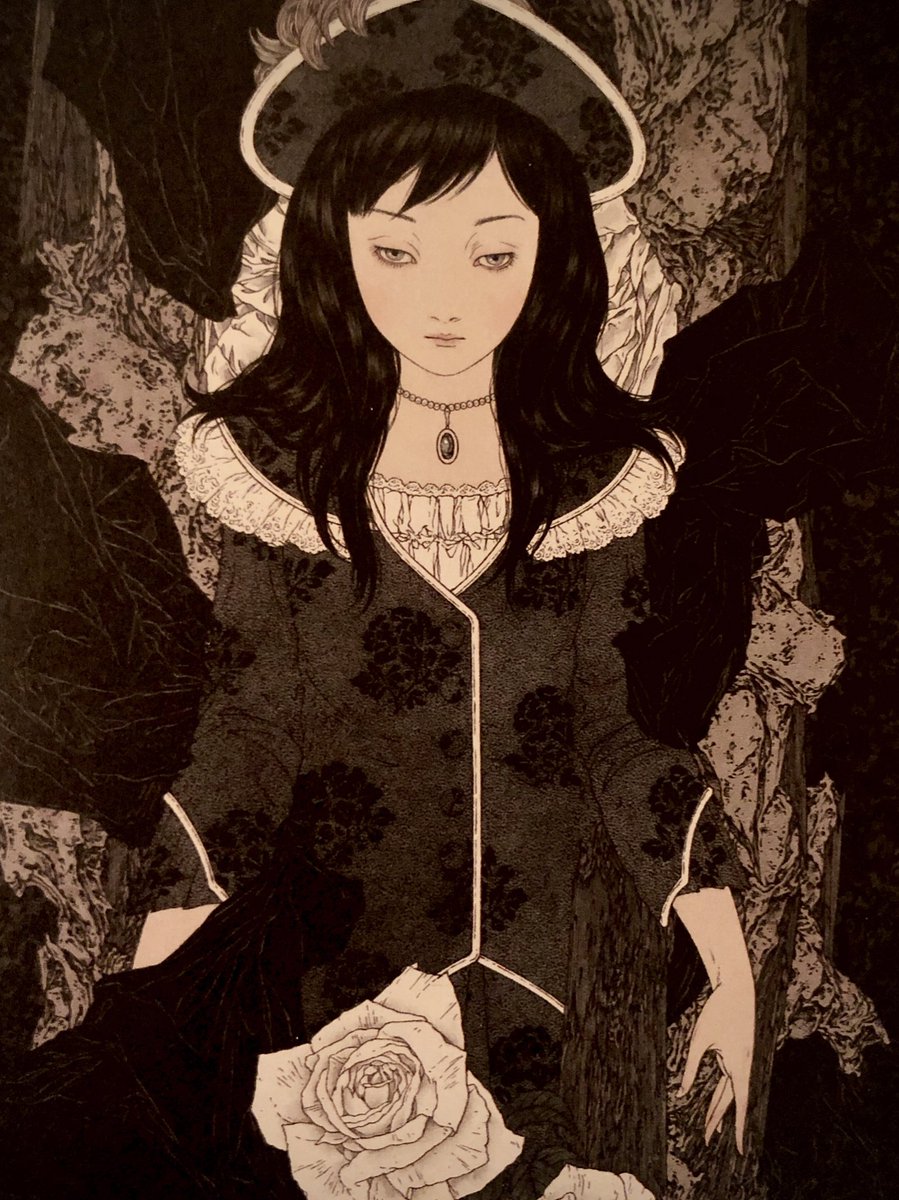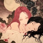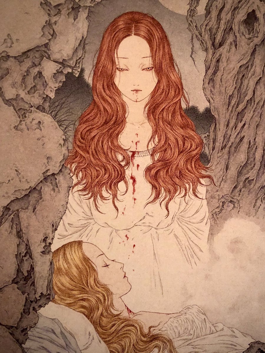 朧げな追憶の中で 散り散りになっていたものの断片が一つになる。 今なお芳しい吐息と甘い血の匂い。 「Carmilla」 2017年 Acrylic on paper