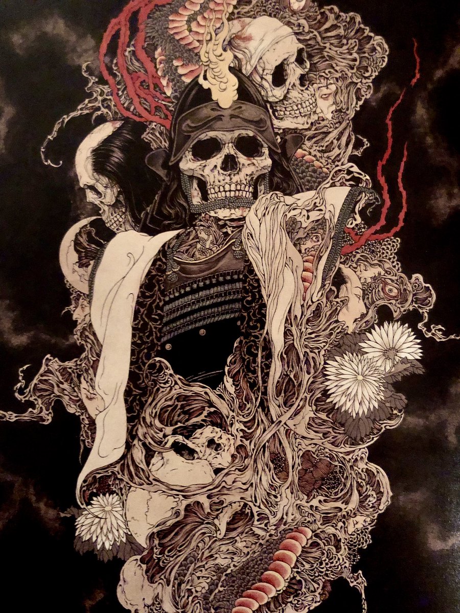 今再び蘇り血潮を浴びて 跳梁跋扈する 死霊の果てしない妄執。 「戦国ホロコースト・Warring Land Holocaust」 2009年 Acrylic on paper