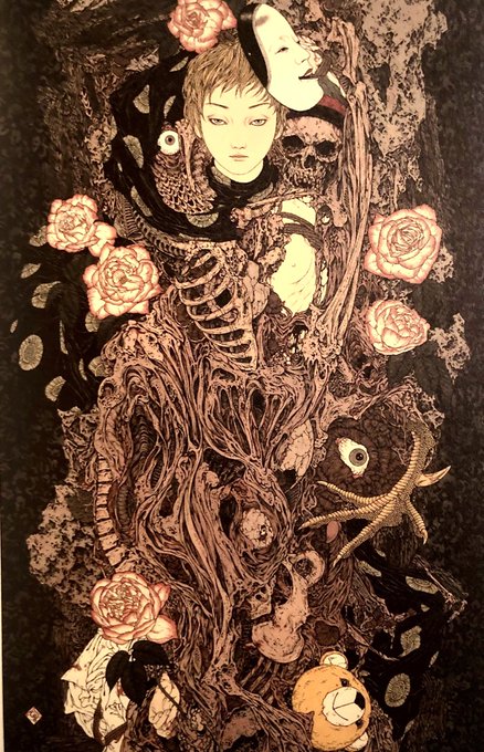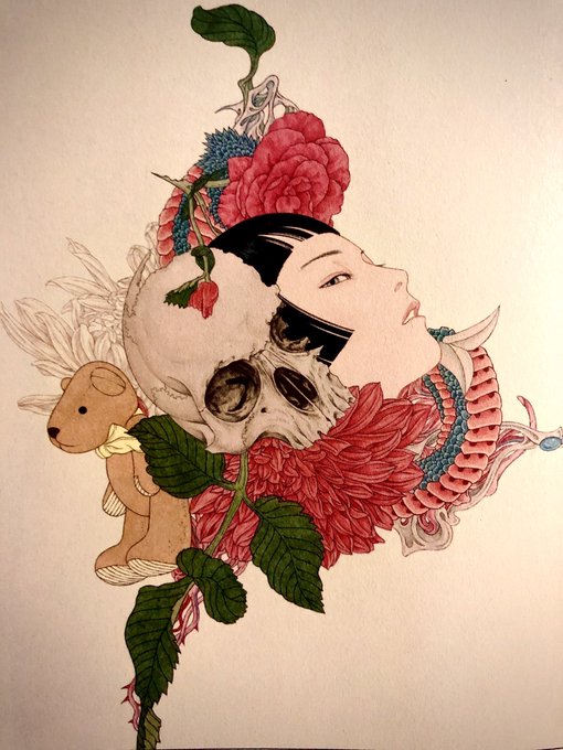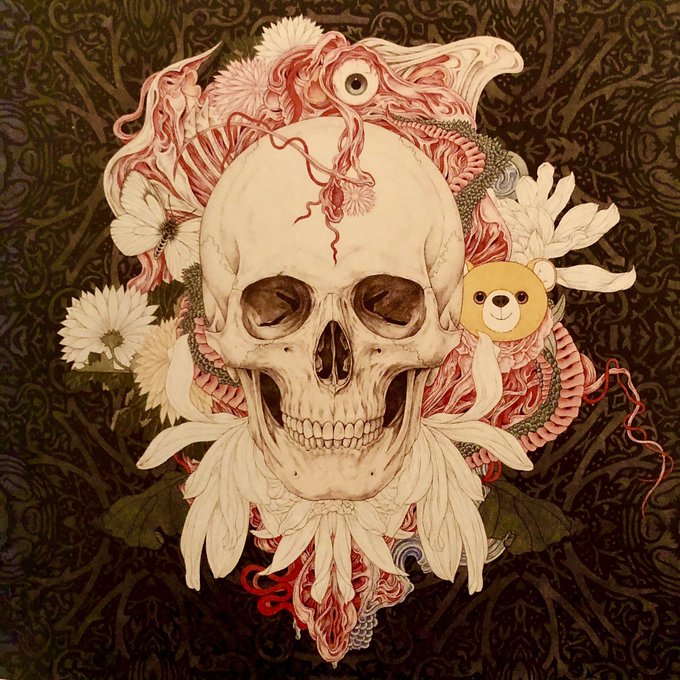 63 489 鎮魂として 死と再生の表象として 循環する存在の有り様を思う。 「The Emblem of Death」 2016年 Acrylic on paper 23/05/05 13:46