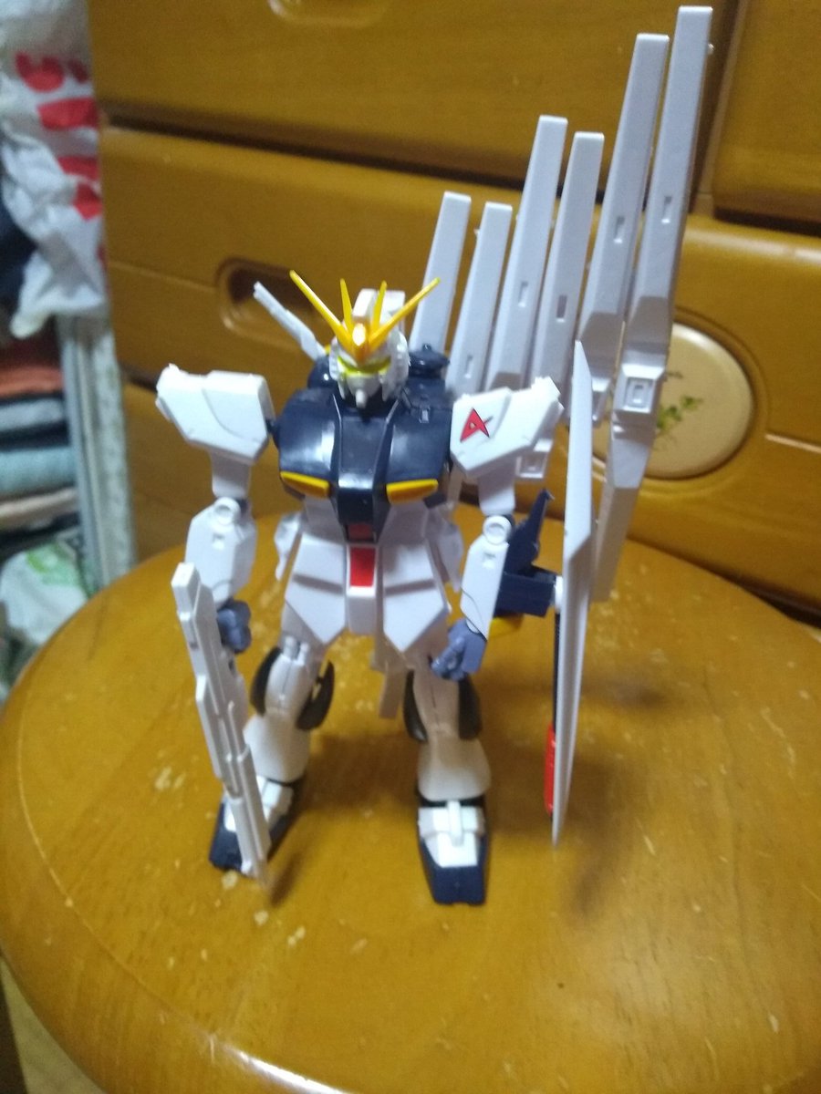#ガンプラ #ガンプラ好きと繋がりたい #ガンプラの画像貼るとRTされると聞いて #逆襲のシャア #逆シャア #ニューガンダム やっと旧キット組めたけど、案の定フィンファンネルがポロリ連続で接着剤付けないとポロリが止まらんけど、全体的に良いキット