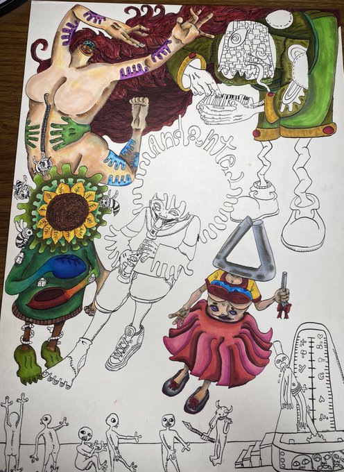 2 2 生物兵器。 #イラスト #ペン画 #art #illustration #アナログ #絵 #コピック #wip 23/06/07 01:00