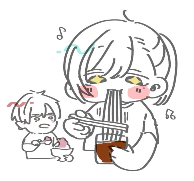 そうめんの吸い込みがえげつない天使と引く吸血鬼 #かな絵 #KuzuArt #くろのあとりえ