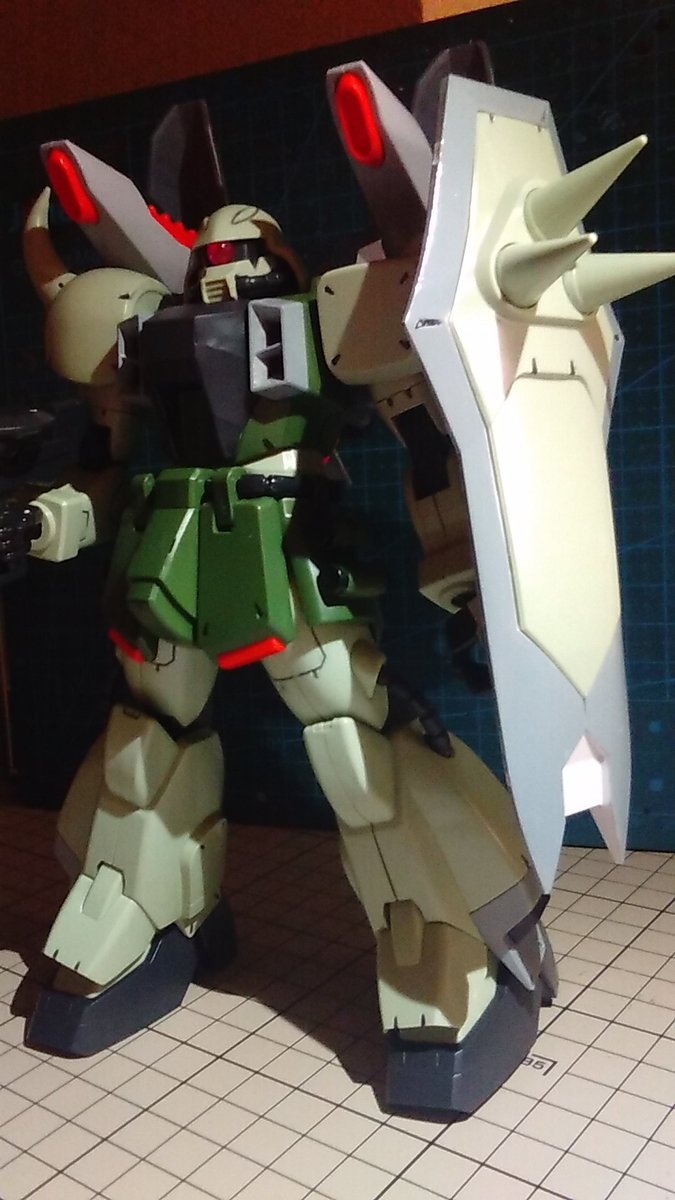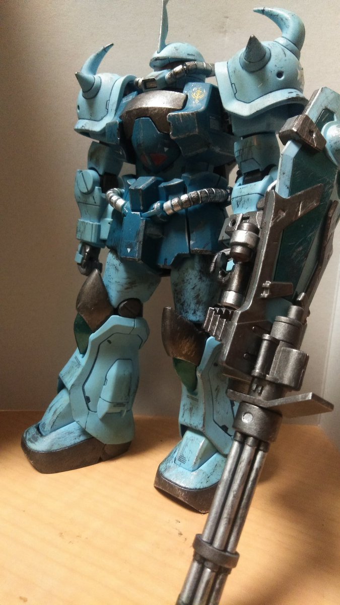 そういえば汚してたグフカスタム 何とか完成しました❗塗り直したとこをまた汚したりドライブラシ掛けたらかけすぎるし(笑)まぁなりに気に入ってます。 #グフカスタム #ガンプラの画像貼るとRTされると聞いて