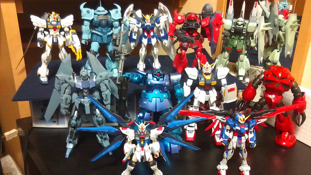 更に今年造った可愛いやつらです🎵 つや消ししてるのからしてないのまで色々混ざってますがおじさんの力作と思い見てくだされば光栄です❗ 来年度はアクションベースとか使ってポーズ取ります……積みもついでに(笑) #ガンプラの画像貼るとRTされると聞いて #今年造ったガンプラ晒そうぜ
