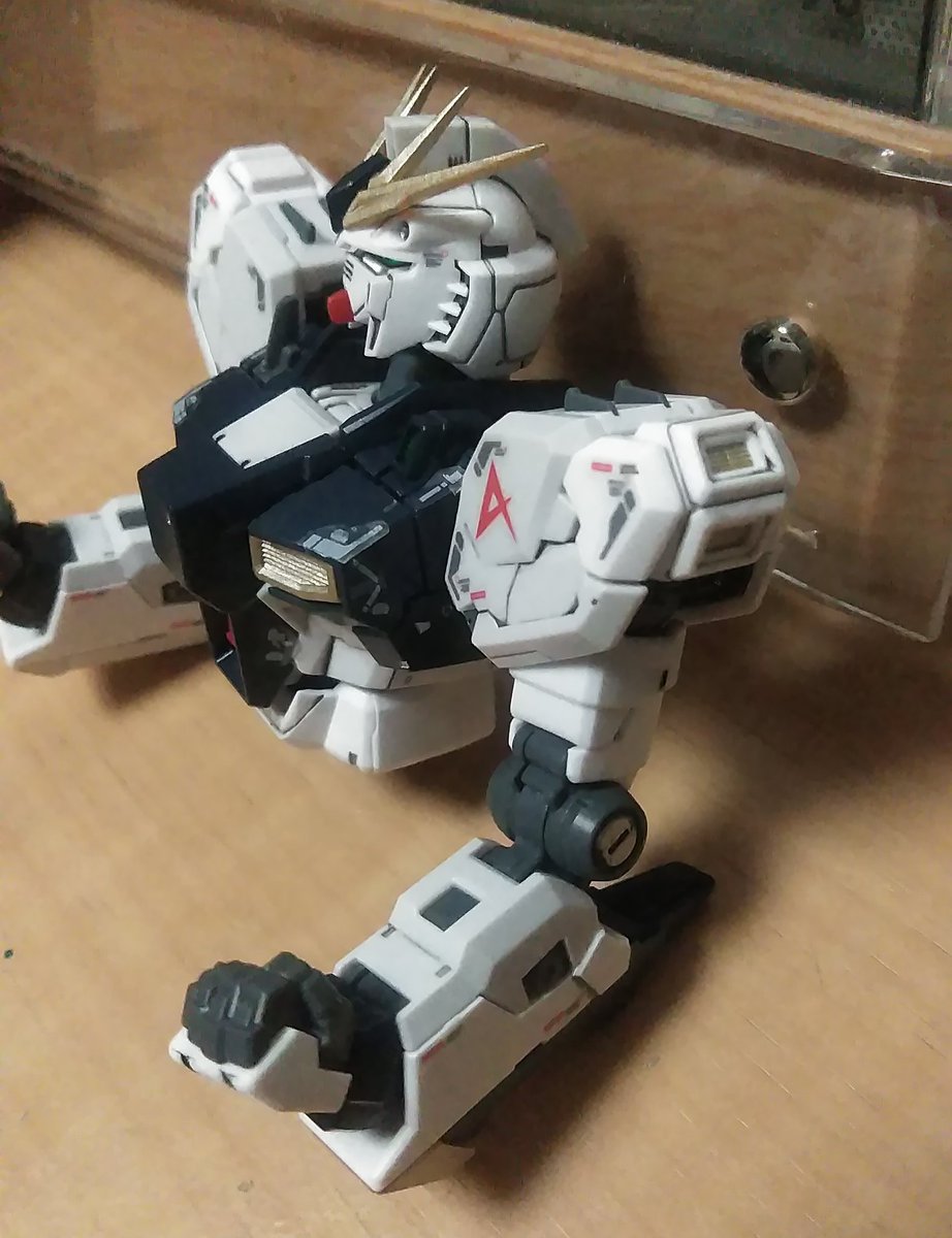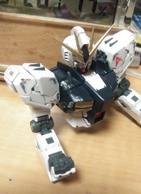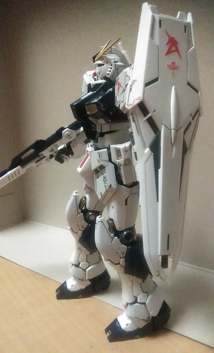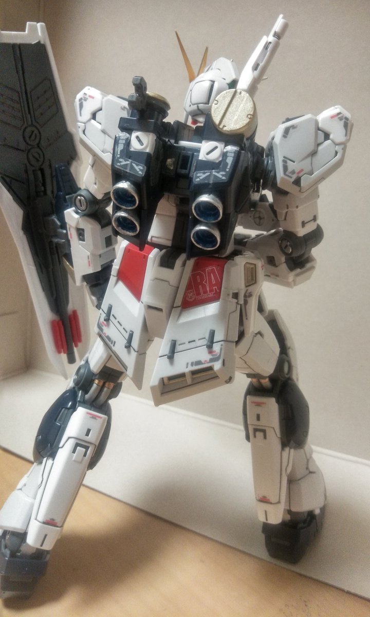 皆様今晩にゃ🎵😊 RGνガンダム完成です。 少々汚しすぎましたが石を押し出す前の死闘のあとです(笑) そのうちチタニウム作って比べます 少しは進化してるかな… #νガンダム #ガンプラの画像を貼るとRTされると聞いて