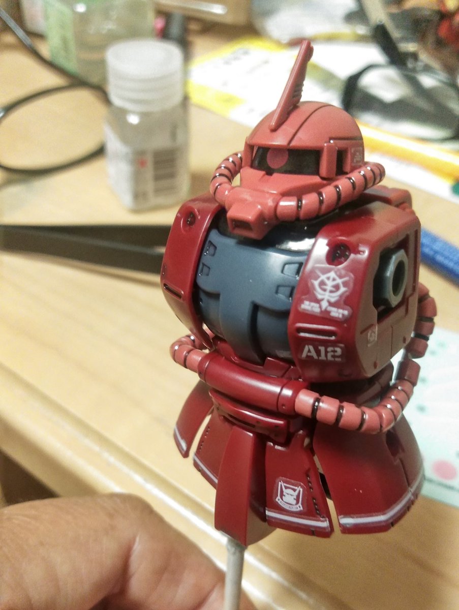 皆様今晩わ❗(^^) シャア専用ゲルググの進捗です🎵 明日辺りは下半身の外装サフかな フレームはほぼ完成です🎵塗り訳イマイチかも…… #ガンプラの画像貼るとRTされると聞いて #シャア専用ゲルググ