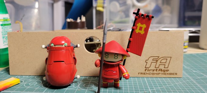 誕生日おめでとうございます🙇 って、何度言ったことか😁 良い歳になりますように🙏 で、金色ね、これしかないけど。 あと、確実に自分の塗装のバイブルになった電撃(これが無かったら初代とは出会わなかったかも)とその後の教室(1期生)の成果。 初代原型のグラム・ザン。 #鋭之介初代日野誕生祭2022