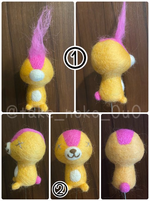 0 3 ざっくざくチクチクしてベースから色付きフェルトまで出来た。あとは色ムラとバランス調整しながらオレンジ色を重ねる。てか、手足の色が違うからここで生やさないとヤバくない…?🫠 #羊毛フェルト 23/06/02 18:01