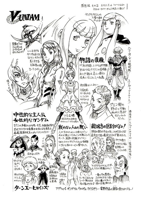 #9月9日はターンエーの日 凄く面白かったです!。今一番好きな #ガンダム だ。2000年を迎えてふっきれた #富野由悠季 御大の新章!黒歴史を乗り越えた白トミノ☆やさしく大人なファンタジー #ターンエーガンダム おすすめです☆(感想絵再掲)
