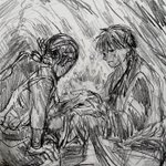 分かりづらいんですが、手を繋いだ先には玉鷺がいるイメージで描きました。 お父さんがわりみたいでありお兄ちゃんでもあり、でもどうしても届かない他人…そんな大事な人を救いたくてがんばってたな〜