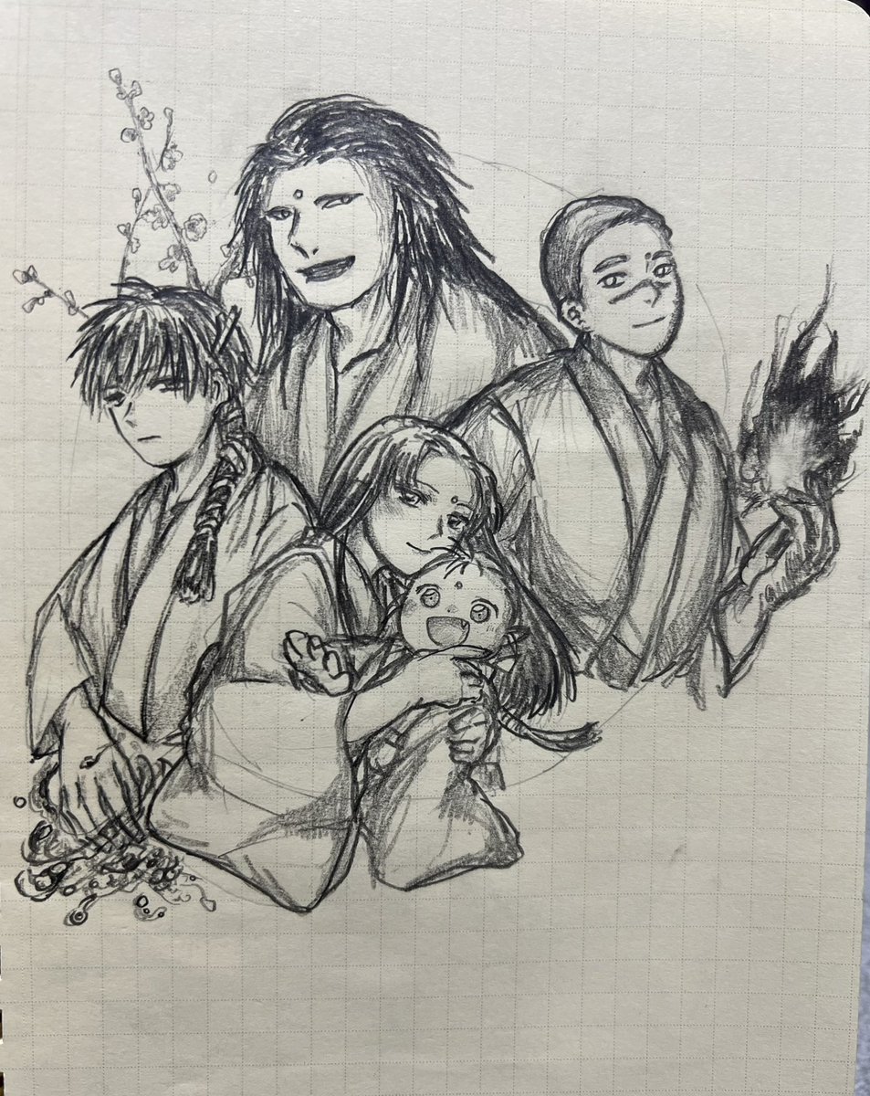 1 4 中サイズノートの残りを埋めようとしてるけど息切れした…! ノートの最初のページは、ちょうど7代目メンバーがどうなるか予想で描いてた(4枚目)。ので、色々わかってきた今、再度描いてみたのでした。 23/01/07 22:14