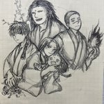 中サイズノートの残りを埋めようとしてるけど息切れした…! ノートの最初のページは、ちょうど7代目メンバーがどうなるか予想で描いてた(4枚目)。ので、色々わかってきた今、再度描いてみたのでした。