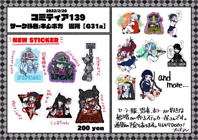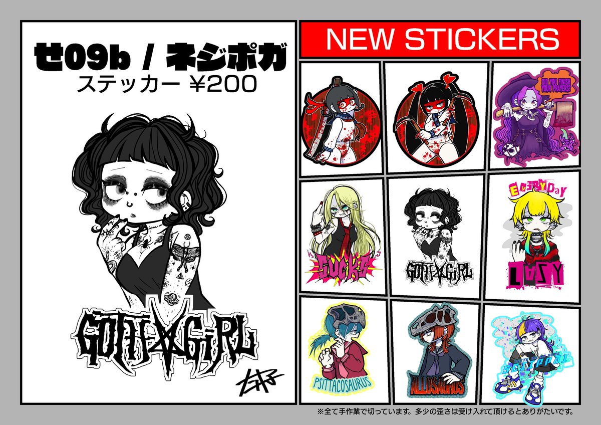コミティアの新しいステッカーはこんな感じです。旧作も合わせて30種類くらいあると思います。原画は5枚持っていきます。通販もする予定なのでご無理なさらず立ち寄っていいただけたら嬉しいです。よろしくお願いします😇 #コミティアお品書き #コミティア144