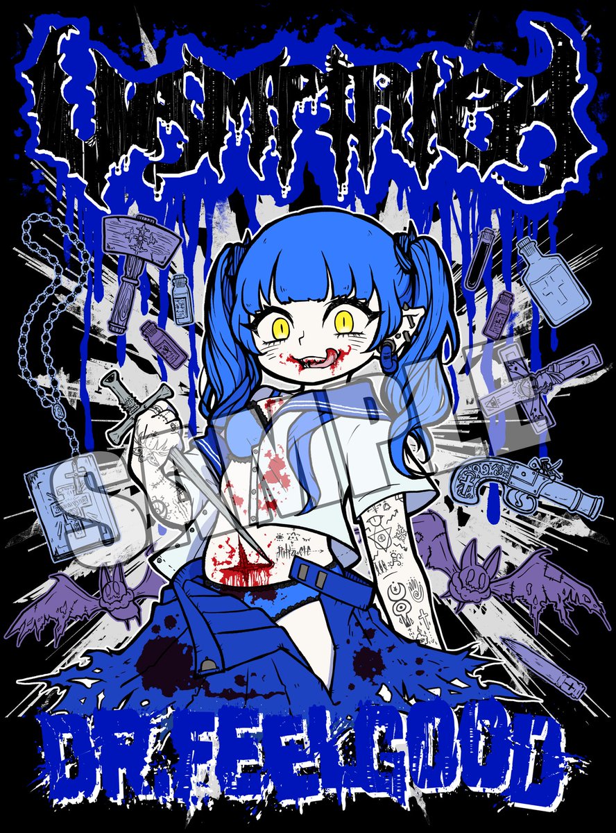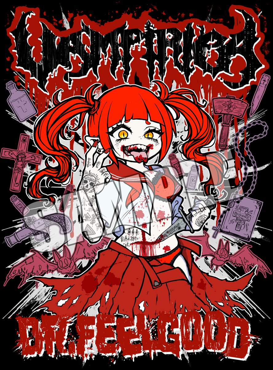 DR.FEELGOODのTシャツ描かせていただきました。十字架を体に刻んで煽る強気ヴァンパイアガールズです。「この程度で弱るわたしではない!」って事でつよつよマインドの時に是非。 ↓ご購入はこちら↓ 赤の子🟥aikafuture.theshop.jp/items/70459877 青の子🟦 aikafuture.theshop.jp/items/70459858