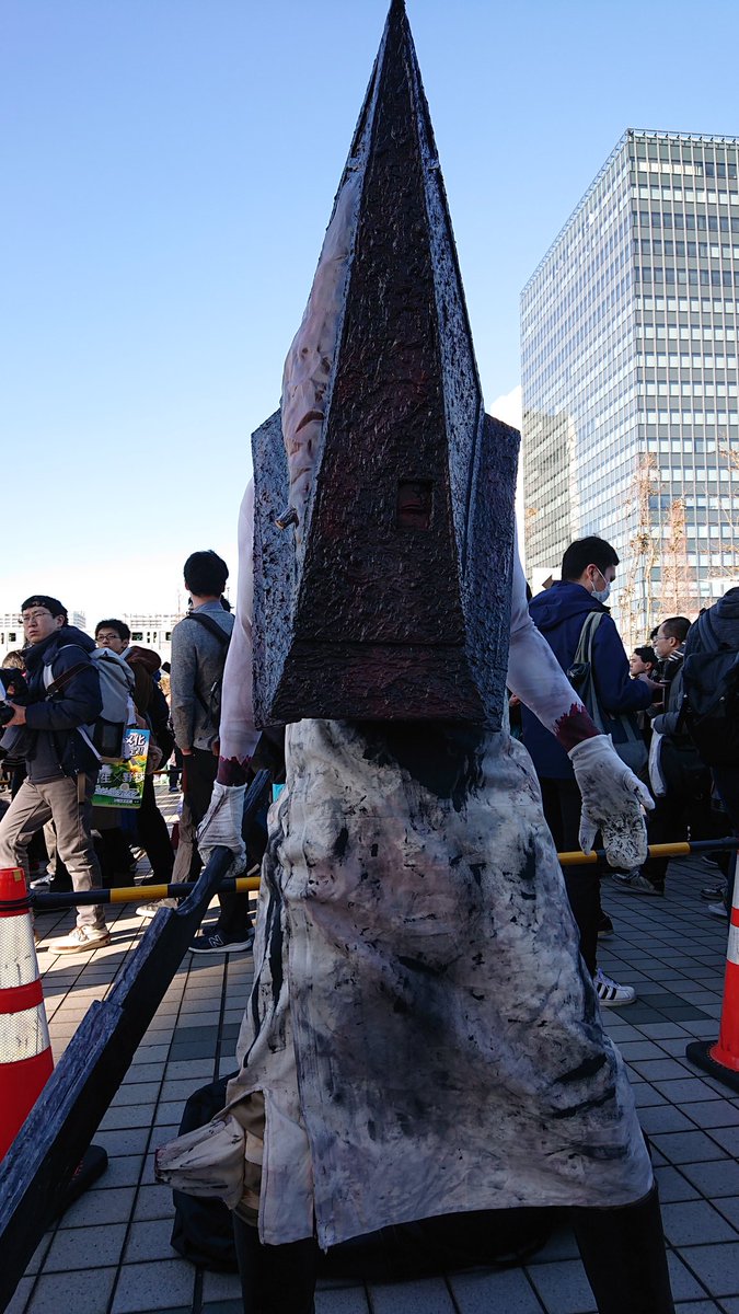 三角様。被ってるのの質感が凄い。期せずして威圧感のある絵に。 #C95 #C95コスプレ