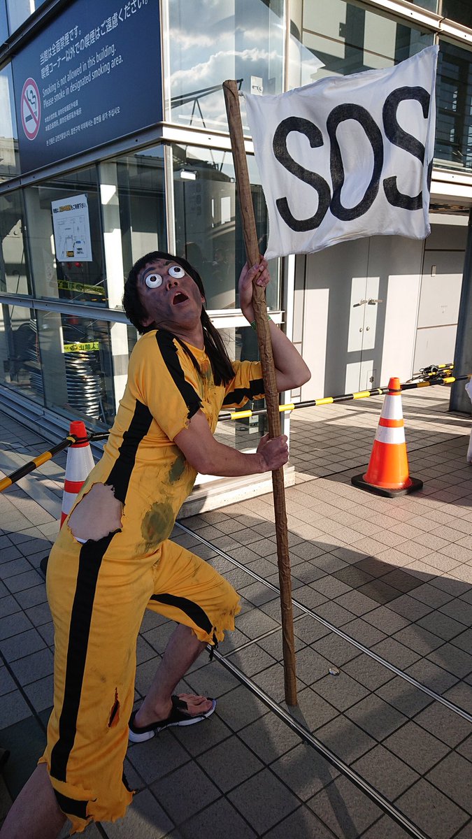 最終日にとんでもない人見つけたよ……『浦安鉄筋家族』の春巻(遭難中)。今にも「助けてくれチョリソー!」とか言い出しそう。春巻ならコミケでも遭難しそう、いやする(反語 #C97 #C97コスプレ
