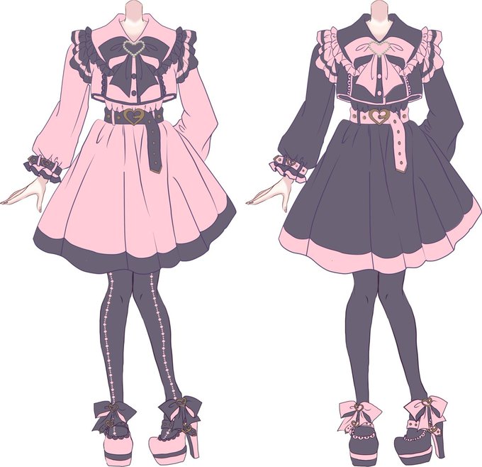 コート風ワンピとセーラーワンピ作ってます🎀 ネイルの色や柄もこだわったので可愛く 仕上がるように頑張ります…!👗 #イラスト #衣装デザイン #Vtuber素材 #VTuberAssets #オリジナルイラスト