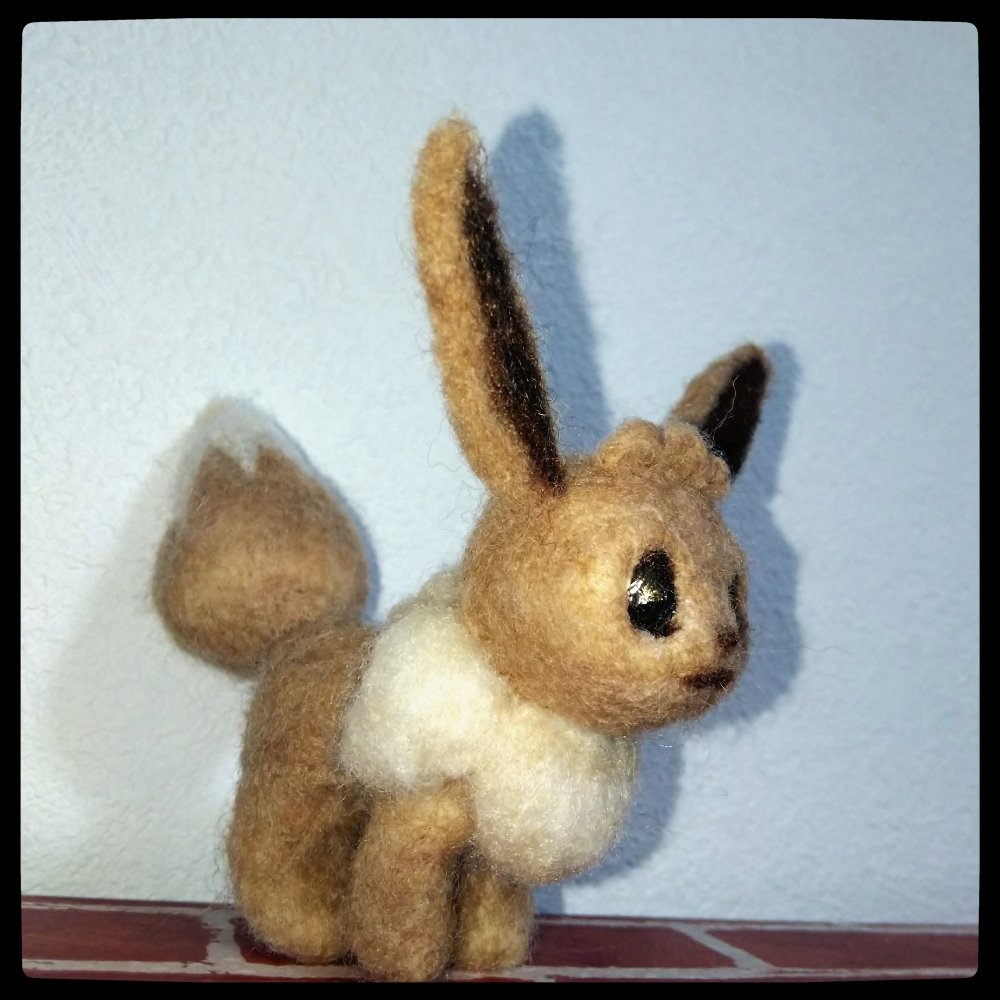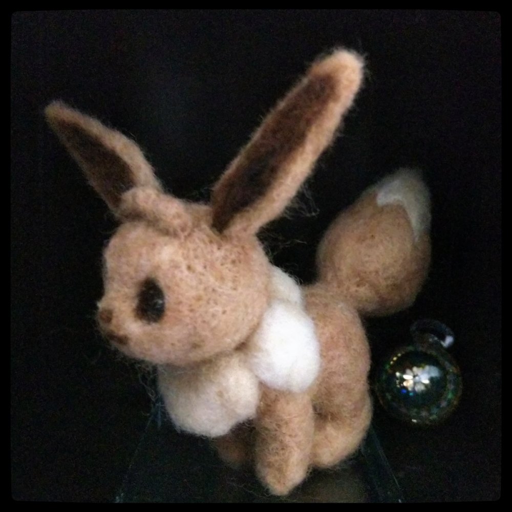 どの角度が一番可愛く見えるでしょうか…可愛い子出来ました。 #ポケモン刺せるかな #イーブイ #羊毛フェルト #ハンドメイド