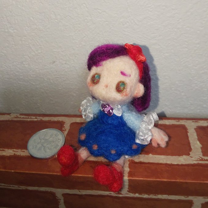 女の子可愛く出来ました。 一円玉も置いてみました。 #羊毛フェルト