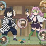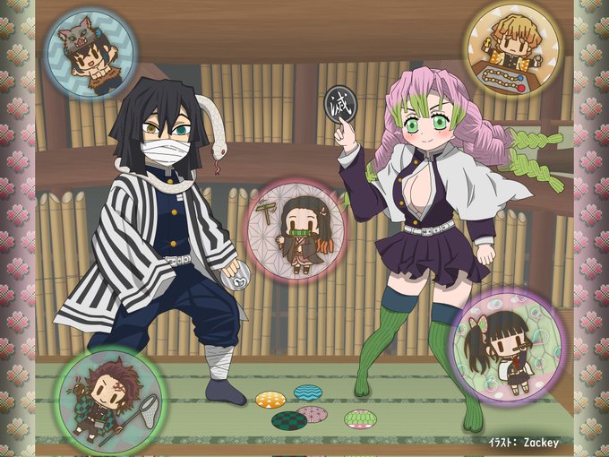 鬼滅の過去絵③ みつりちゃんの趣味は「メンコで負け知らず」と知って、メンコ勝負してるおばみつ描いてみた🐍💕 #鬼滅の刃 #おばみつ #甘露寺蜜璃 #伊黒小芭内 #栗花落カナヲ #竈門炭治郎 #竈門禰豆子 #我妻善逸 #嘴平伊之助