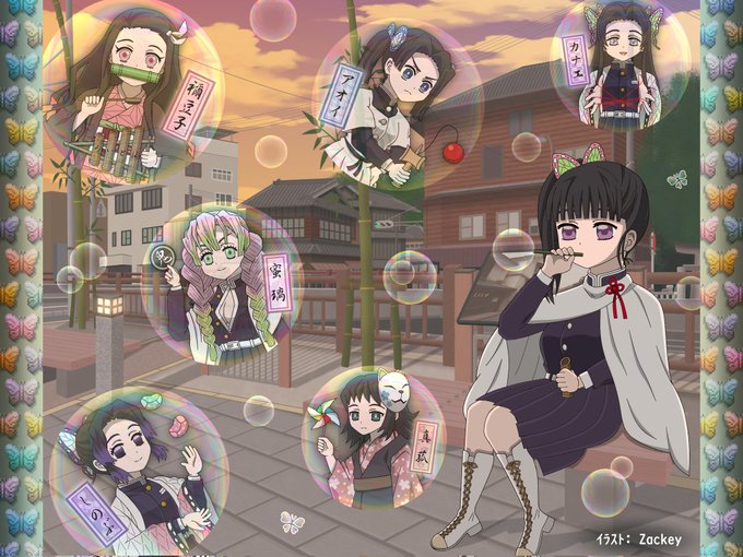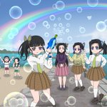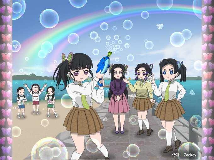 鬼滅の過去絵⑤ カナヲちゃんに影響され、蝶屋敷メンバーみんなでシャボン玉遊びしてる様子描いてみた。 #鬼滅の刃 #蝶屋敷 #栗花落カナヲ #神崎アオイ #胡蝶しのぶ #胡蝶カナエ #中原すみ #寺内きよ #高田なほ
