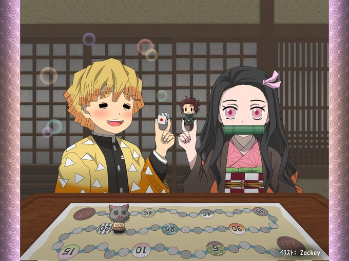 鬼滅の過去絵⑦ 善逸の趣味が双六と知って、 禰豆子と一緒に双六してる様子描いてみた。 #鬼滅の刃 #我妻善逸 #竈門禰豆子 #竈門炭治郎 #嘴平伊之助