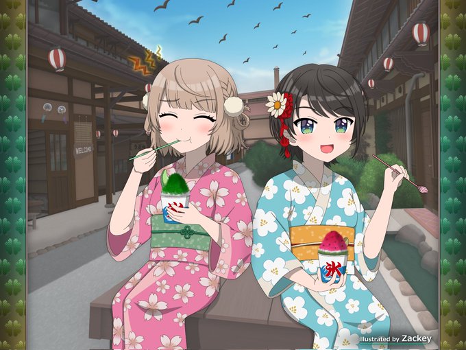 7 45 ういママとスバルのイラスト描いてみた。 かき氷のシロップも、それぞれの好物であるメロンとスイカにしてみた🍧🍈🍉 #しぐれうい #大空スバル #どろういんぐ 22/07/31 22:57