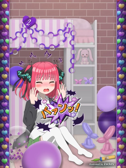 風船部屋をテーマに、ごと嫁イラスト描いてみた(二乃Ver.)💜 風船が突然割れてびっくりするにのちゃんの様子🎈 #五等分の花嫁 #中野二乃