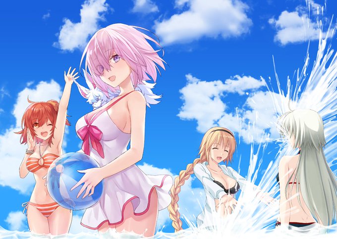 今回のかるさん(twitter.com/karu_puchi )とのFGO合同本の表紙ですー。水しぶき描いてて楽しかった! 月曜日 東地区“L”ブロック-60abにてよろしくお願いしますー。