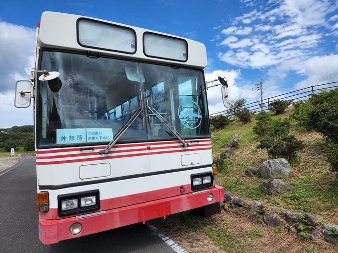また火張山花公園には島鉄バスの廃車体が休憩スペースとして設置されております!🚌 車内も休憩スペース用に改装されておりました⋆͛☕️⋆͛*゚ #島原コスプレの乱 #島コス twitter.com/i/web/status/1…