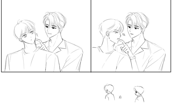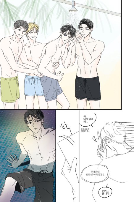 난데없는 브이틱 수영복 화보를 그리느라 대지각했습니다 (사진참고했어요) 채색할 생각 없었는데 채색하면 트친이 300년동안 문엋 포타 써준댔음 문대청려 문엋 + 엋른브이틱페스자유롭게상상가능 #블루베리는오른쪽_엋른전력