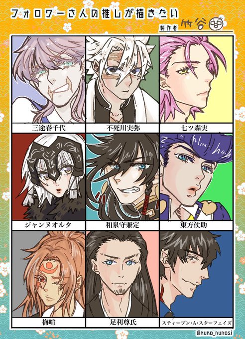 遅くなりました! みなさんの推しを描かせて頂きましたー!!! ▼ご協力者さま▼ @110_fuji @yookahamamee @mizuno_0917 @sou0128 @chiarie169 @yuka2795 @sakaiya_honmaru @kemomose @nicaido2z2 かまってくださってありがとうございました〜!ちょ〜楽しかったでーす!✌️✌️✌️✌️✌️✌️✌️✌️✌️✌️ twitter.com/takeyaaaaaaaaa…
