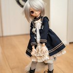 やっぱりかわいいᐠ( ᐢ ᵕ ᐢ )ᐟばにちょこさんのお洋服 うちの飼い猫ってことで首輪を追加してみました~ ドールのボディは着せる洋服の布の厚さを考慮しているのか、ちょっと首が長く感じるので少々隠してあげると気にならないかな~どうかな~ #ばにちょこ #俺のけもみみを見てくれ #MDDはいいぞ