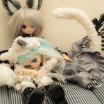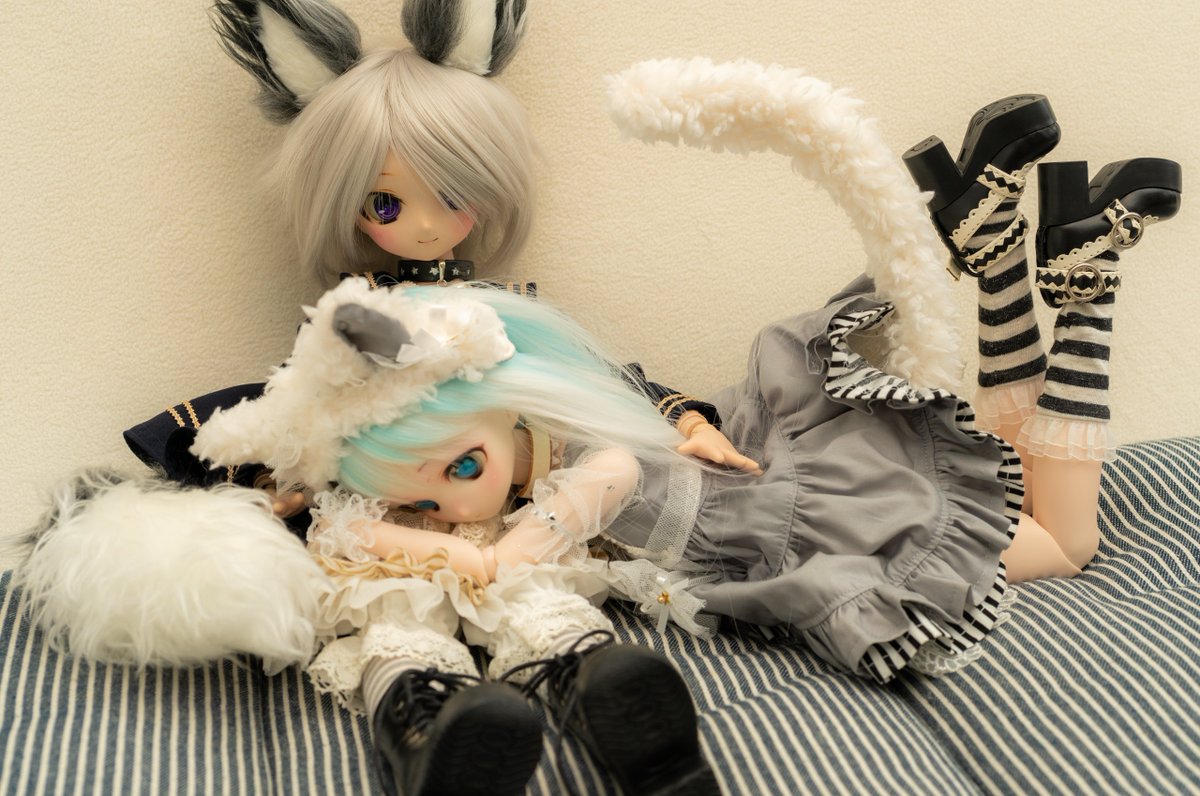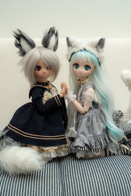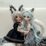 「仲良きことは美しきかな」でもちょっと仲良すぎ? 狐尻尾に動きをつけられればもっと表現が広げられたと思うので何とか尻尾の軽量化とボディへの結合を考えないと・・・ とりあえず針金の挿入と強力磁石をやってみますかね~ #MDDはいいぞ #俺のけもみみを見てくれ