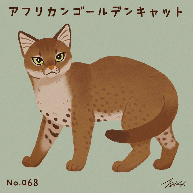 #100猫チャレンジ No.068「アフリカンゴールデンキャット」 アフリカンゴールデンキャットは、アフリカの熱帯雨林や山林に生息するネコ科の動物。夜行性であるため、まだ詳しい生態は明らかになっていない珍しい猫です。主な生息地・アフリカ大陸。体重3~18kg カラカル属
