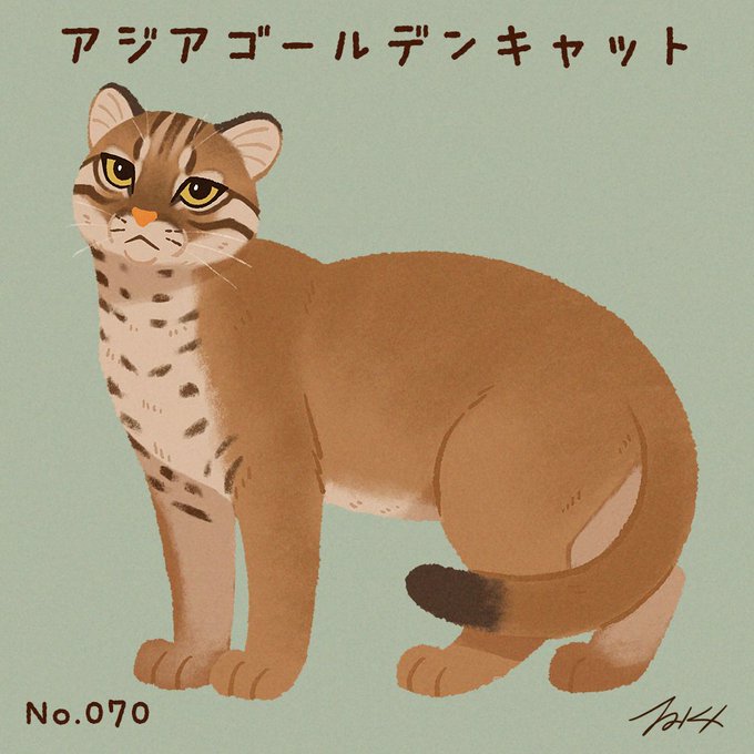 #100猫チャレンジ No.070「アジアゴールデンキャット」 アジアゴールデンキャットは、アジアに生息する中型のネコ科の一種。主に森林地帯に生息し、標高3000mの高地でも生息が確認されている。主な生息地・インド北東部、中国南部、インドネシアなど。体重12~16kg アジアゴールデンキャット属