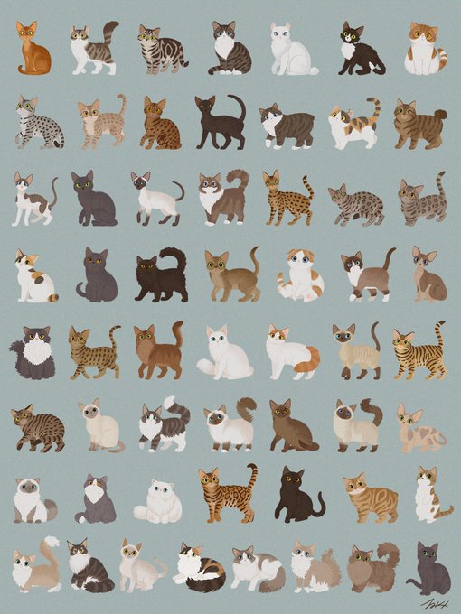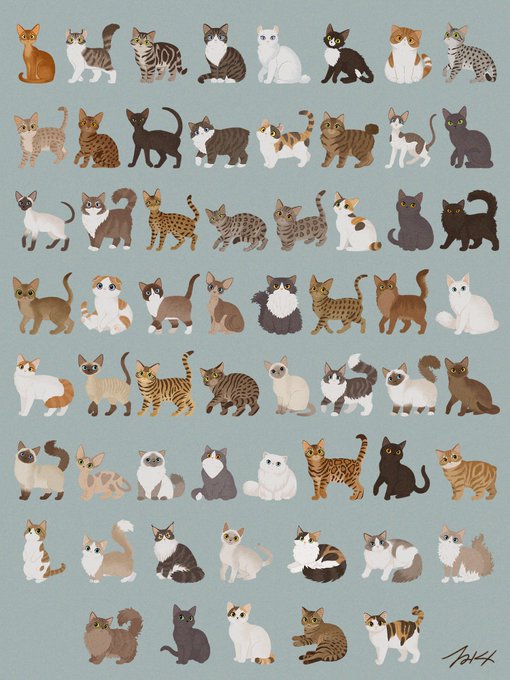 #100猫チャレンジ 中間報告 世界の猫種60種に到達。 イエネコからワイルドキャットまで、様々なネコを描いてます。残り40種もお楽しみに! いつもコメント♥RTなどありがとうございます。励みになります🔥