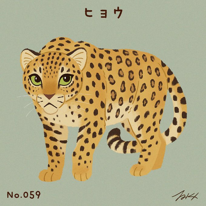 #100猫チャレンジ No.059「ヒョウ」 ヒョウは、ネコ科では最も広域に分布し、斑点模様の被毛が特徴。サバンナや熱帯雨林、半砂漠など様々な環境に生息している。木登りが得意で、単独で暮らしています。主な生息地・アフリカ大陸、アラビア半島、東南アジアなど。体重30kg~80kg ヒョウ属