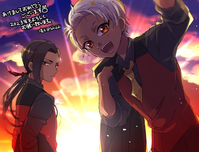 今更あけおめスカラビア(描きたいものを描いたので全くお正月感はない) 今年も細々とよろしくお願いします‼️‼️‼️✊✊😁😁🐍❤️🦦❤️💕💕❤️🔥❤️🔥😘😘😘💕💕💕❤️🔥❤️🔥❤️🔥 #ツイステファンアート #twstファンアート