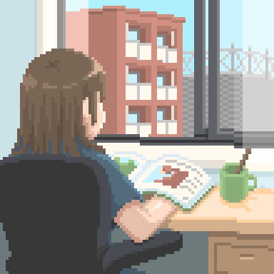 1 27 昼下がりの読書 96×96 #pixelart #ドット絵 23/06/25 17:08