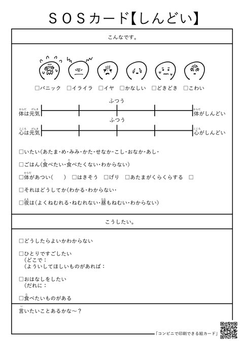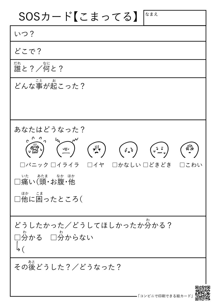 (※再掲だよ~) #コンビニで印刷できる絵カード #A4サイズのイラスト ※写真は #子ども用SOSカード です ユーザー番号:7WYBAG3DPM ボランティアで絵カードなどの視覚支援グッズを作っています。 コンビニの印刷代だけご了承くださいませ。 bit.ly/2HnTNxr
