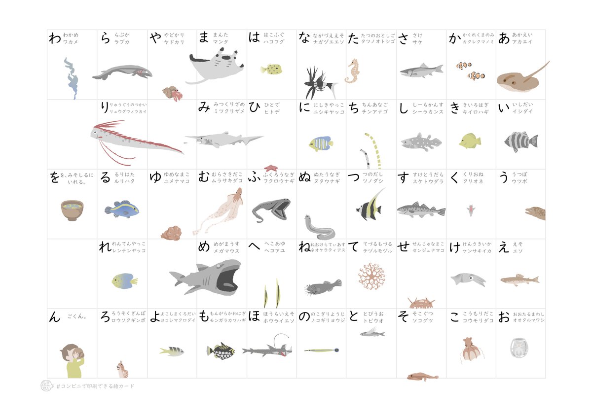#コンビニで印刷できる絵カード #写真サイズの絵カード #A4サイズのイラスト ※写真は #魚のあいうえお表 です ユーザー番号:7WYBAG3DPM ボランティアで絵カードなどの視覚支援グッズを作っています。 コンビニの印刷代だけご了承くださいませ。 bit.ly/2HnTNxr